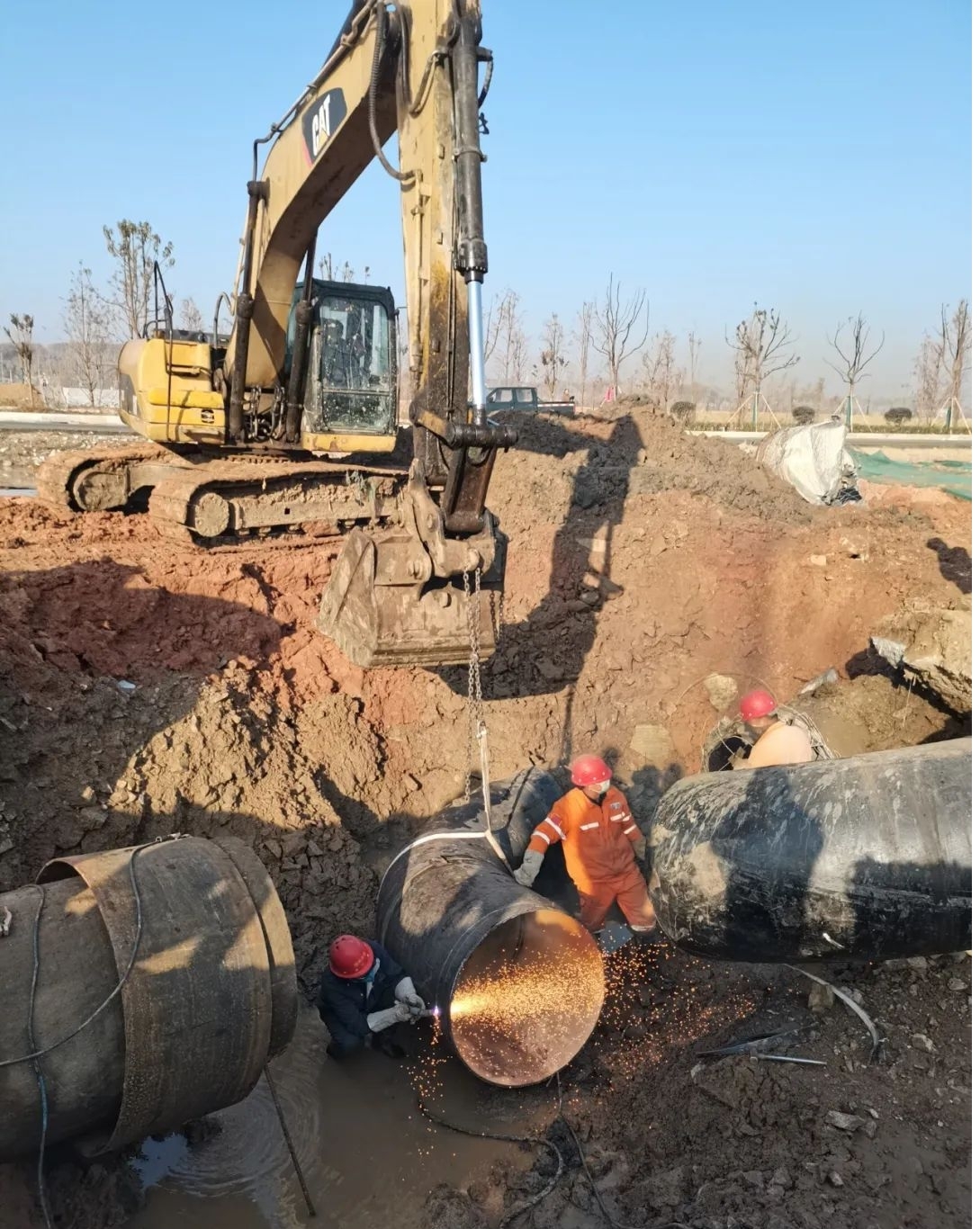 經(jīng)過24小時不間斷連續(xù)奮戰(zhàn),12月7日17時30分許,隨州城區(qū)?水河東岸生態(tài)環(huán)境提升工程PPP項目-DN1000供水主管道遷改工程新舊管道順利連接。