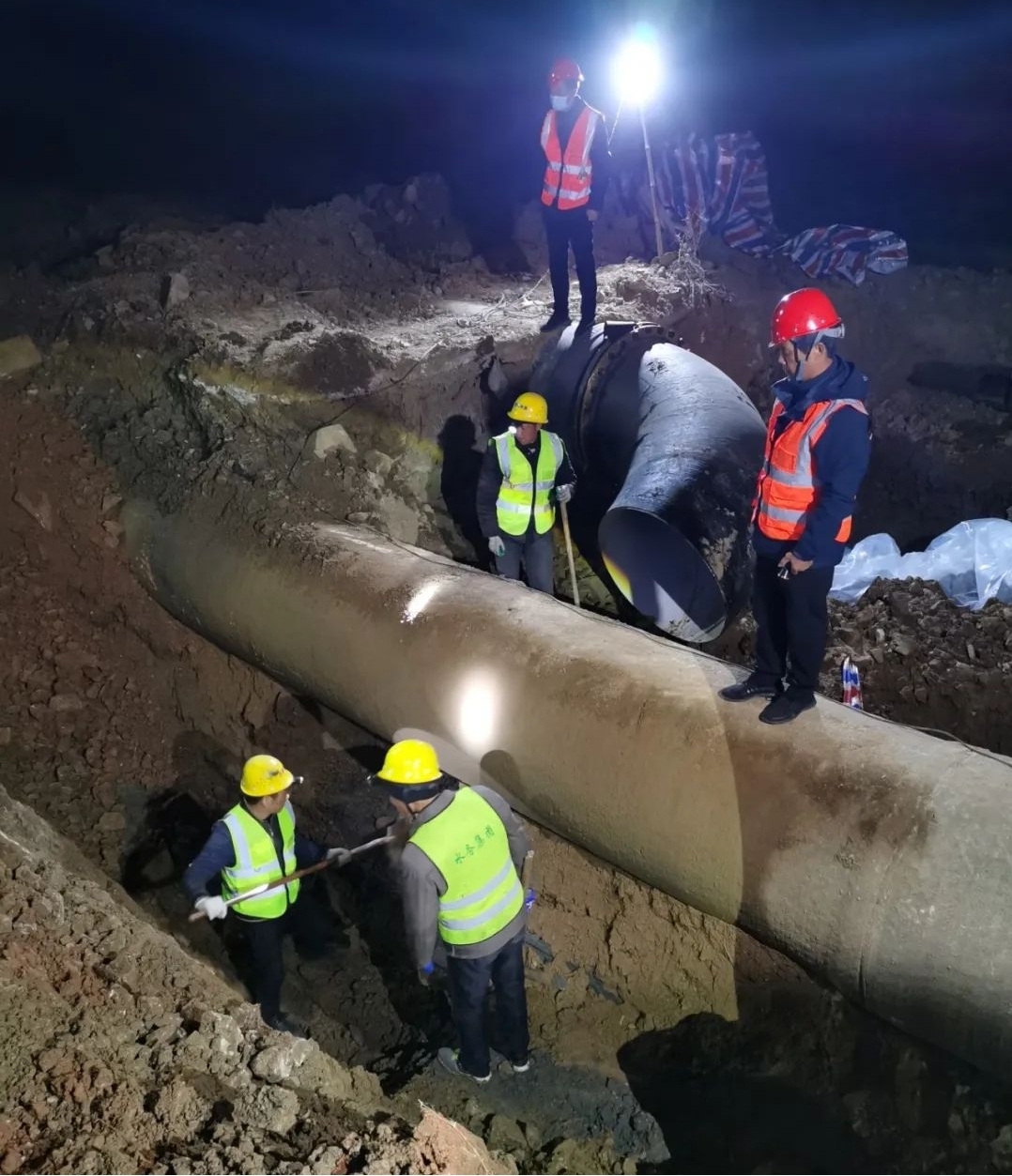 12月7日0時,隨著一聲號令,9處管網(wǎng)維修遷改施工同步啟動。熱火朝天的施工場面,成為冬日寒夜里一道亮麗風景。