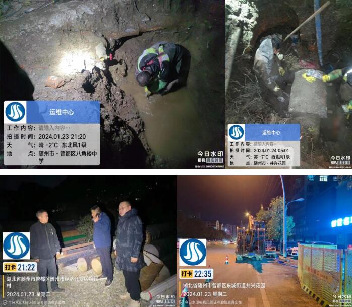 1月23日,有市民反映鐵路片區(qū)下坡處地面有積水,附近有學(xué)校,周邊住戶也較多,對(duì)市民出行造成極大安全隱患。測(cè)漏人員第一時(shí)間到場(chǎng)勘查,排查后發(fā)現(xiàn)漏點(diǎn)在下坡處拆遷區(qū)內(nèi),工作人員及時(shí)與當(dāng)?shù)厣鐓^(qū)居委會(huì)和相關(guān)部門(mén)取得聯(lián)系,經(jīng)過(guò)多方協(xié)調(diào),滿足施工條件后,立即組織搶修隊(duì)伍進(jìn)行開(kāi)挖,在寒風(fēng)凜冽的深夜,搶修人員爭(zhēng)分奪秒,全然顧不上他們已凍得通紅的雙手,只希望以最快速度完成改造作業(yè),最大程度減小停水作業(yè)對(duì)居民的影響。當(dāng)晚21點(diǎn)25分歷時(shí)3小時(shí)將DN100管道漏水點(diǎn)搶修完畢,保障了極寒天氣下周邊居民、學(xué)生出行的安全。