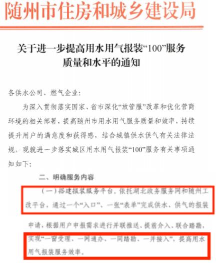隨州市出臺用水報裝相關文件