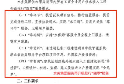 4.“零費用”:針對企業(yè)用戶供水接入項目,工程設計、材料、監(jiān)理、施工全部免費。