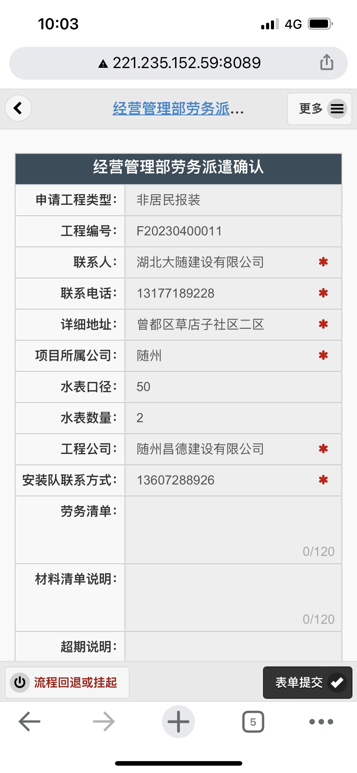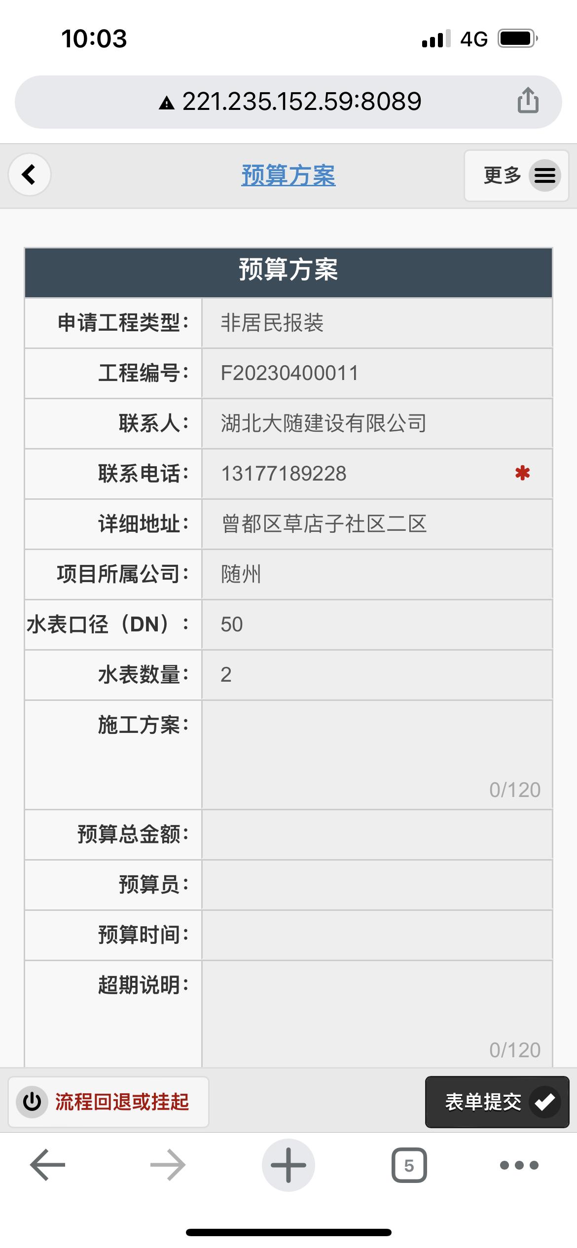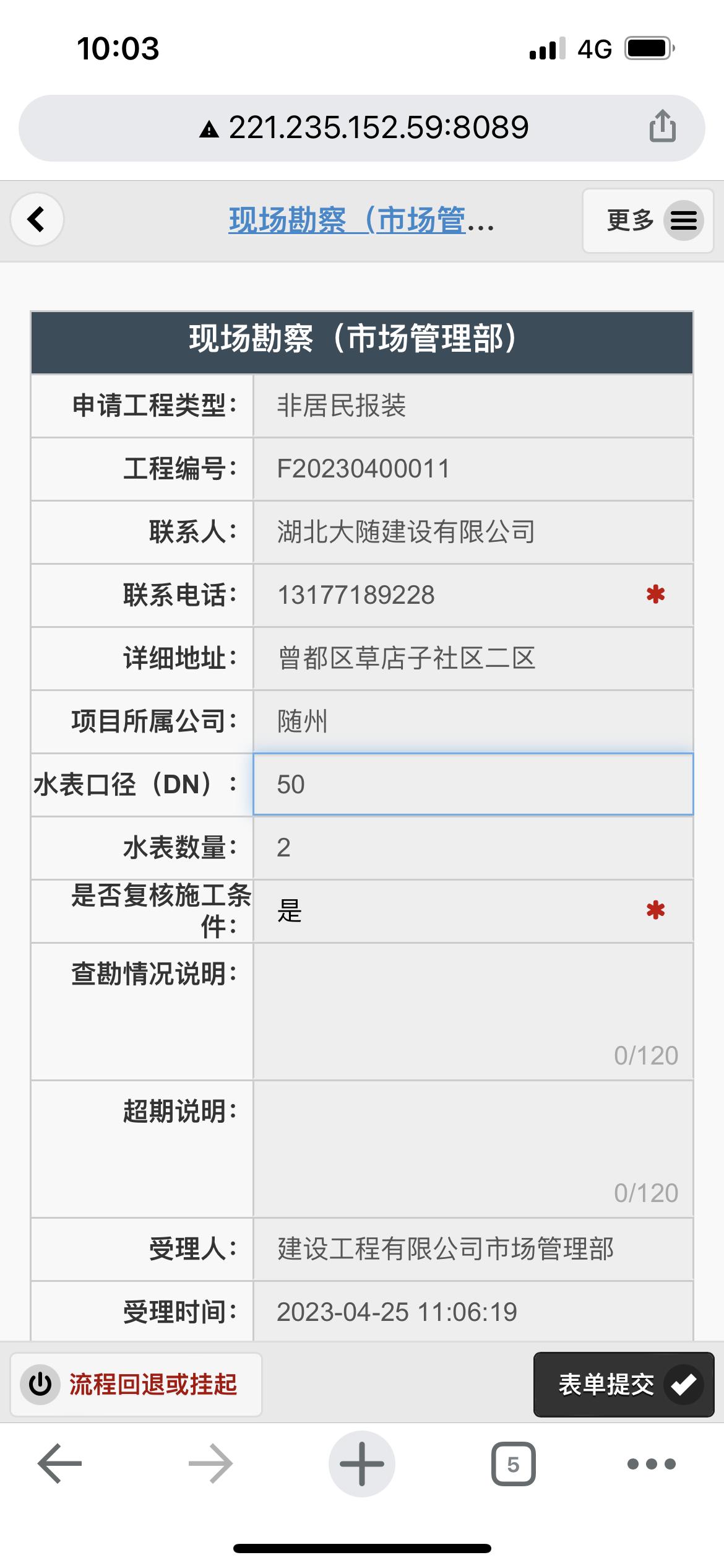 二、應(yīng)用案例及實(shí)際操作界面截圖(包含用水報(bào)裝、現(xiàn)場(chǎng)勘查、預(yù)算方案、工程施工、驗(yàn)收通水、客戶回訪等功能)