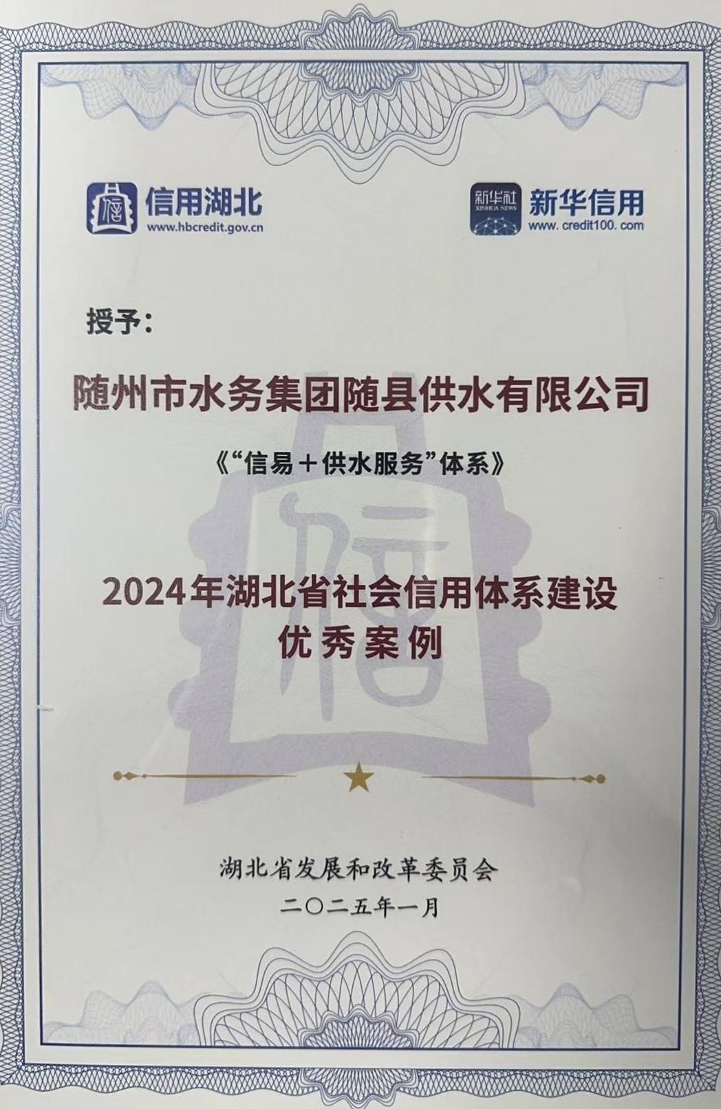 在2024年湖北省社會(huì)信用體系建設(shè)典型案例評(píng)選中,隨州市水務(wù)集團(tuán)有限公司憑借創(chuàng)新實(shí)踐項(xiàng)目《“信易+供水服務(wù)”體系》,成功榮膺全省優(yōu)秀案例獎(jiǎng)。這一殊榮既是對(duì)隨州水務(wù)集團(tuán)創(chuàng)新服務(wù)成效的認(rèn)可,更是為社會(huì)信用建設(shè)和營(yíng)商環(huán)境優(yōu)化注入強(qiáng)勁動(dòng)能,進(jìn)一步激活創(chuàng)新發(fā)展新勢(shì)能。