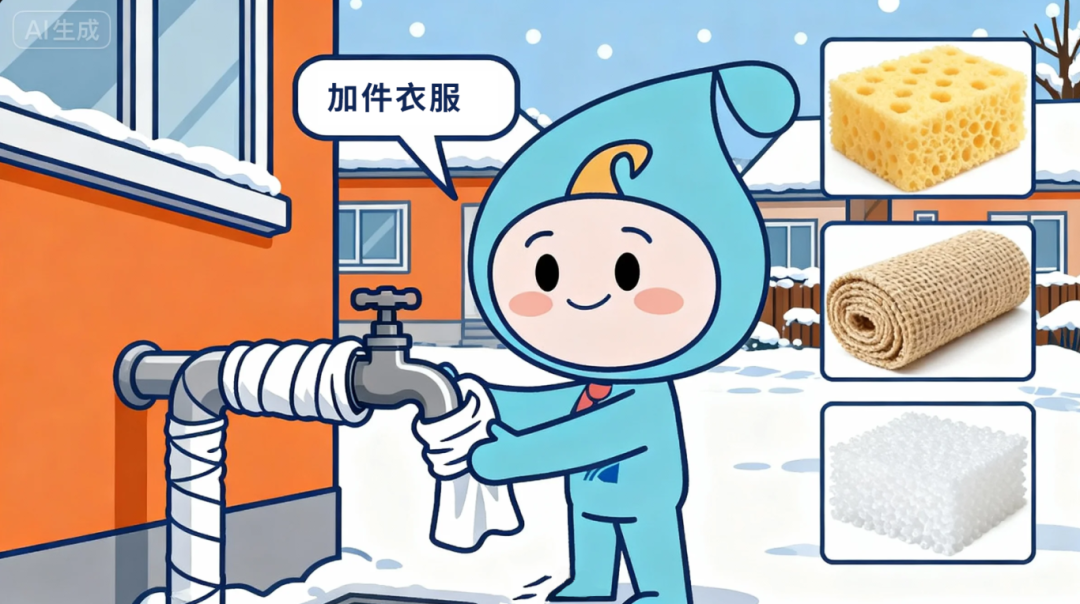 對暴露在室外的水表、水管、水龍頭等用水設施,建議采用家中廢舊棉絮、衣物、保溫棉等保暖材料進行緊密包裹,確保裹護嚴實無空隙,并及時更換受潮的保暖材料,保持干燥狀態(tài),有效阻隔低溫侵襲。